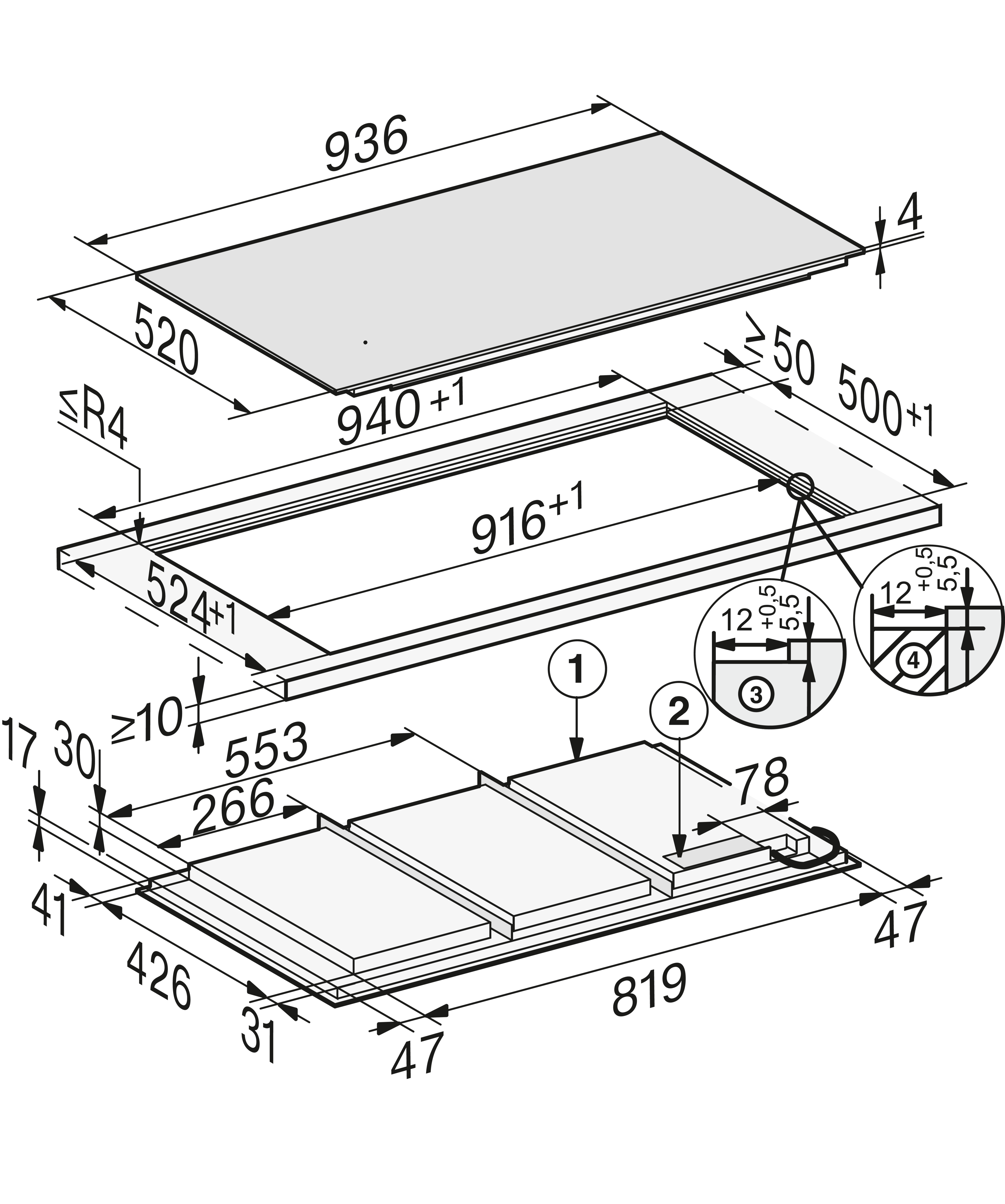 Шириной 942 мм и со сплошной зоной нагрева для максимального удобства